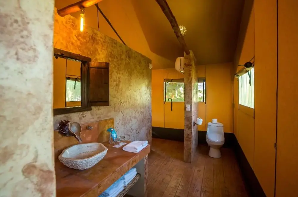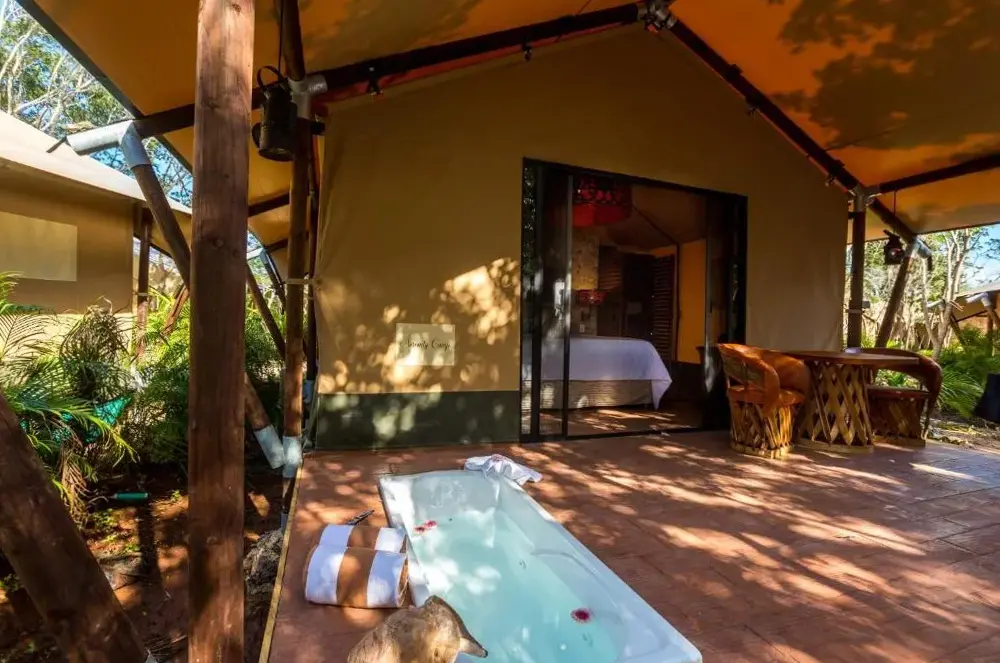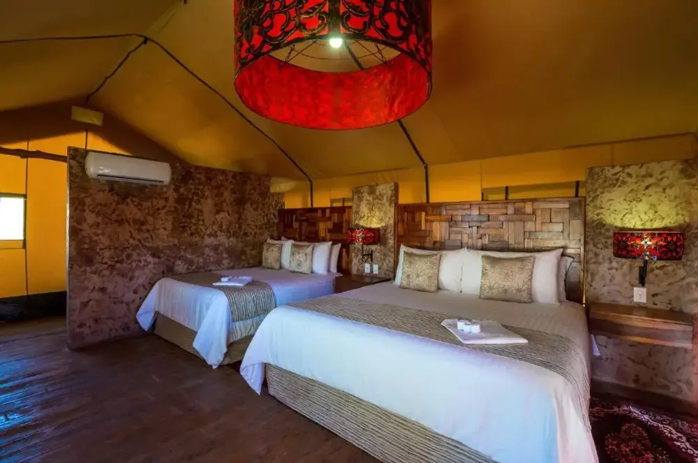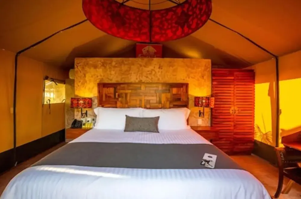¡Qué concepto genial! La tienda ofrece la comodidad de una habitación normal pero conserva el encanto de una tienda de campaña.